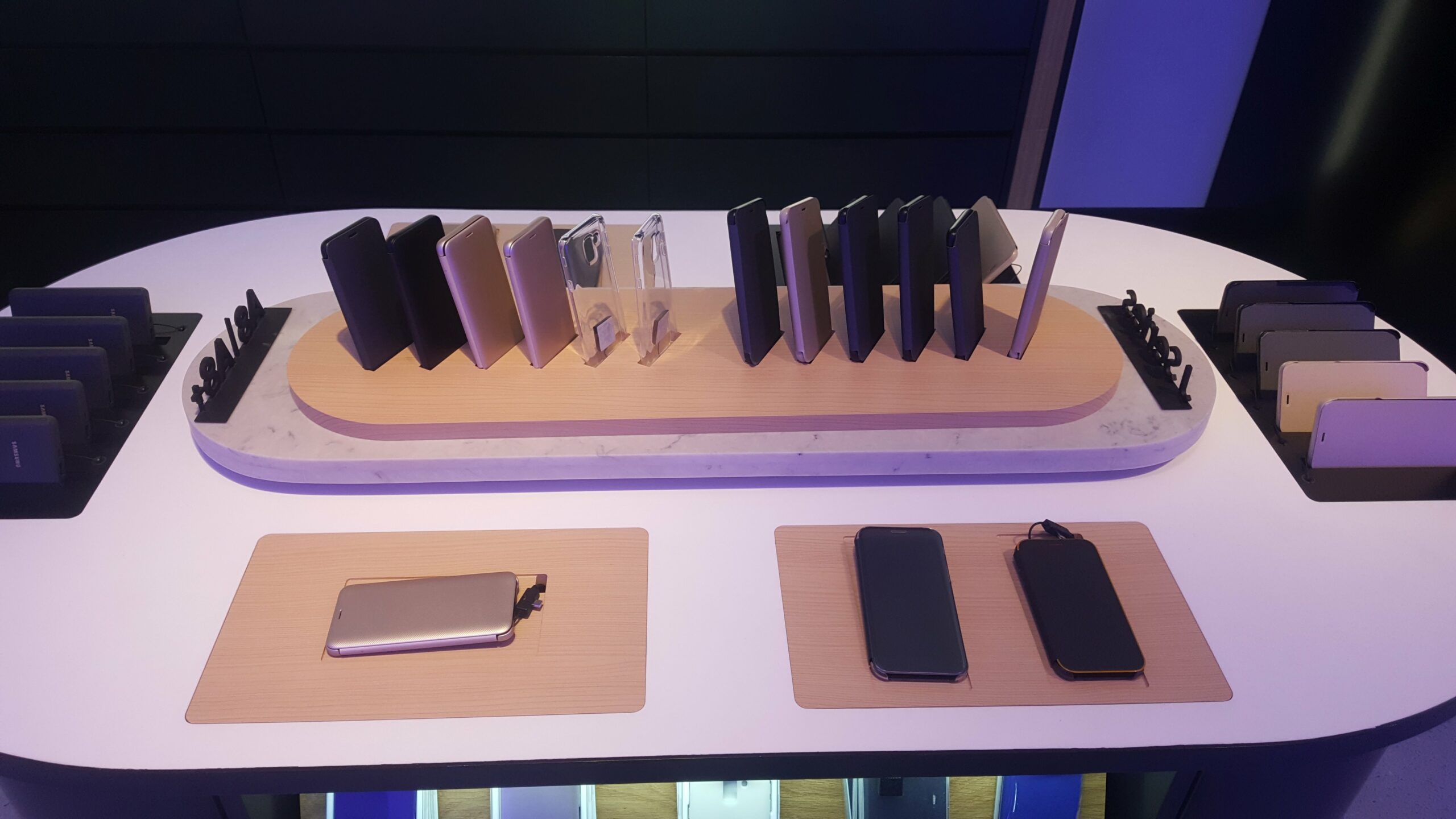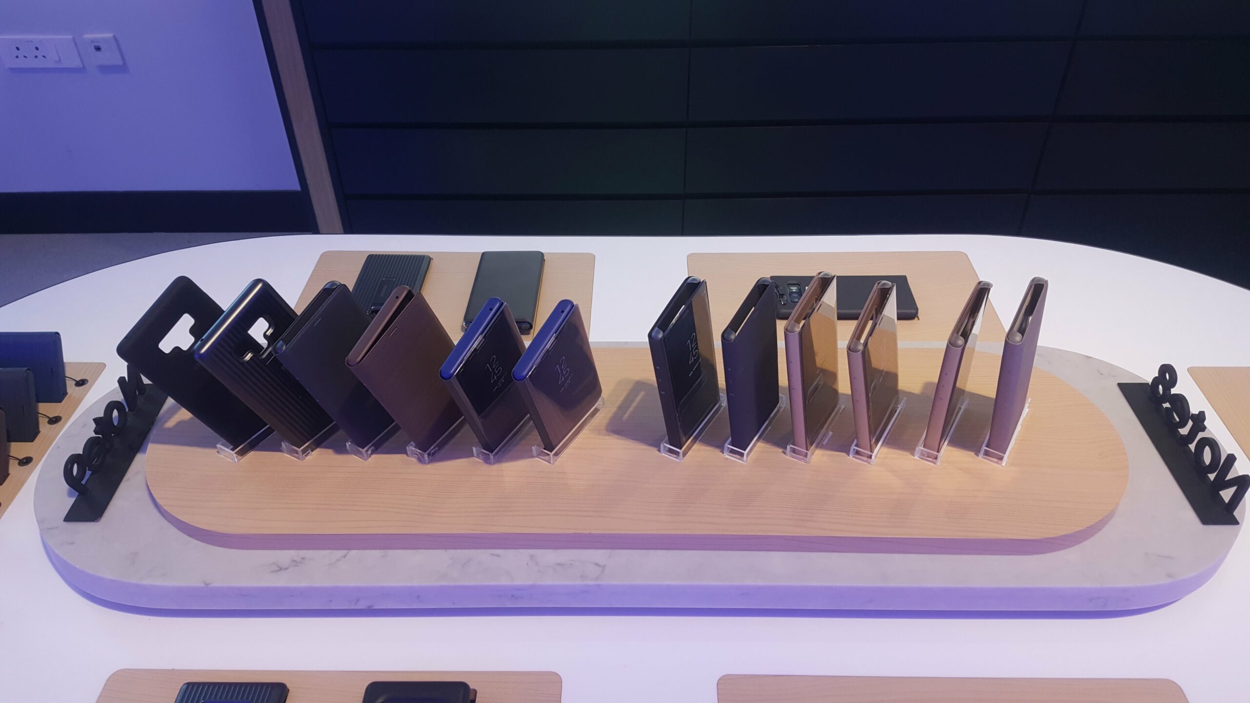 The ground floor is mostly reserved for the Galaxy smartphones, tablets, and wearables. Samsung’s entire smartphone lineup from its budget devices to flagship models are on display. All the tables where the smartphones are displayed feature a proximity sensor which detects a visitor walk-in and automatically displays the model specifications on a display strip in front of the device. The company has also created a separate section for a large collection for its device accessories.
